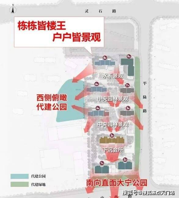 从规划图来看,项目前排可直面大宁灵石公园无敌景观;而办公部分设置在地块东北侧,也有隔断进行出入口区分,对住宅部分来说几乎没有影响。