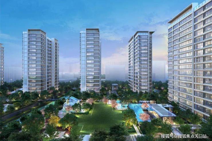 以一轴一带多境的格局,打造迎宾客厅、仪式水景、景观连廊、艺术水苑、森氧绿境、精装大堂六重归家礼序。