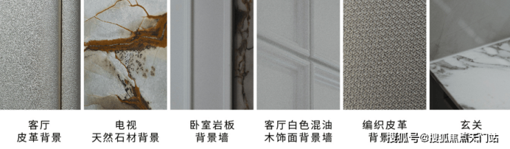 精装更是大手笔:丰富的背景墙,天然石材的电视背景墙。各种皮革面、木饰面的客厅、餐厅背景墙,让空间质感更高,更层次感丰富。
