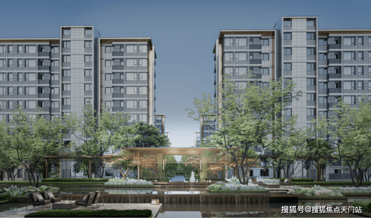 步入庭院,精致会客厅搭配匆匆绿意和层叠水院,颇具层次感的美景让归家的业主瞬间放松,卸下一天的疲惫,也深度诠释了项目归家即是度假开始的设计理念!