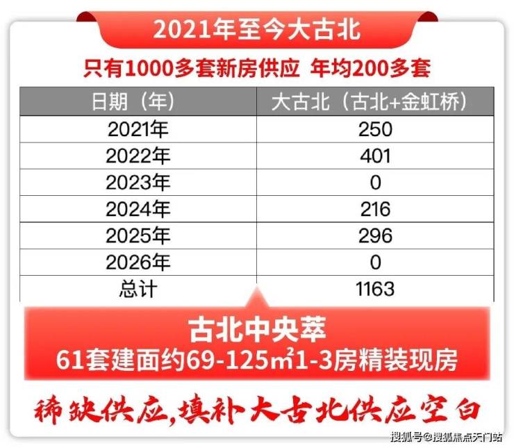 的确,过去5年多来,大古北板块有两年零新房供应,年均供应仅200余套,新房稀缺度不言而喻。
