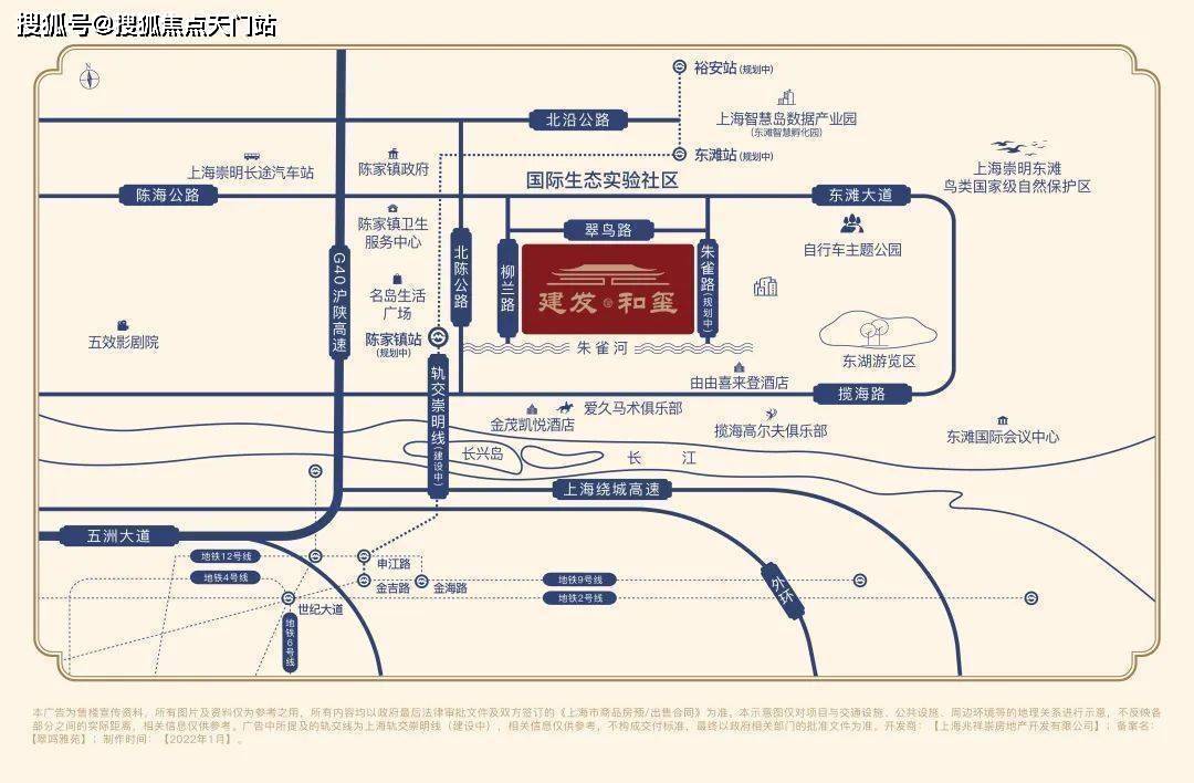 上海建发和玺地处崇明区陈家镇板块,陈家镇作为上海长江大桥、长江隧道连接上海的“桥头堡”,同时也是沪陕高速公路G40起点。
