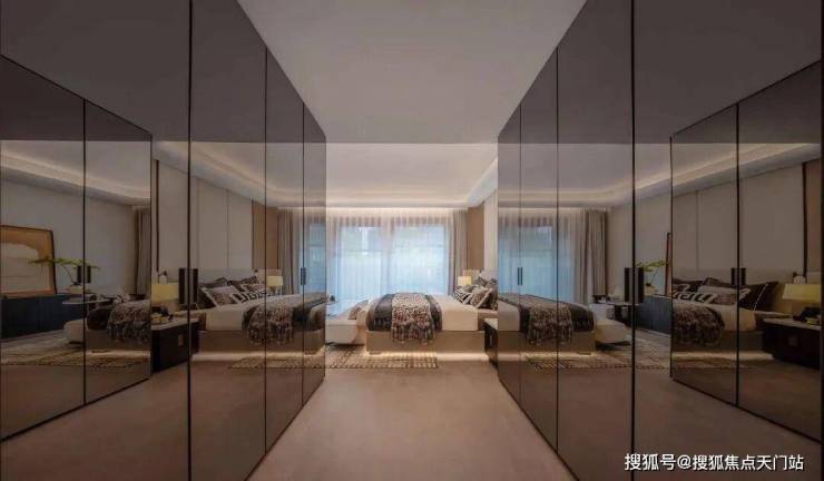 再来看看项目的样板间,还没有进入到样板间内就能感受到扑面而来的尊崇感了,这个是项目约200㎡下叠户型的电梯,市面上大多小区的公区电梯可能都没有它做的好,而且它还是一梯一户的设计,极具私密性!