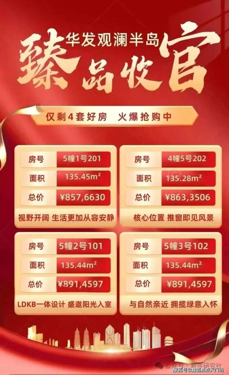 令人始料未及却又万分惊喜的是,据最新消息, 【华发观澜半岛】在清盘前夕,还有 4套建面约136㎡6层真洋房可买, 总价仅约850万级,最后席位,认购从速,错过再无!