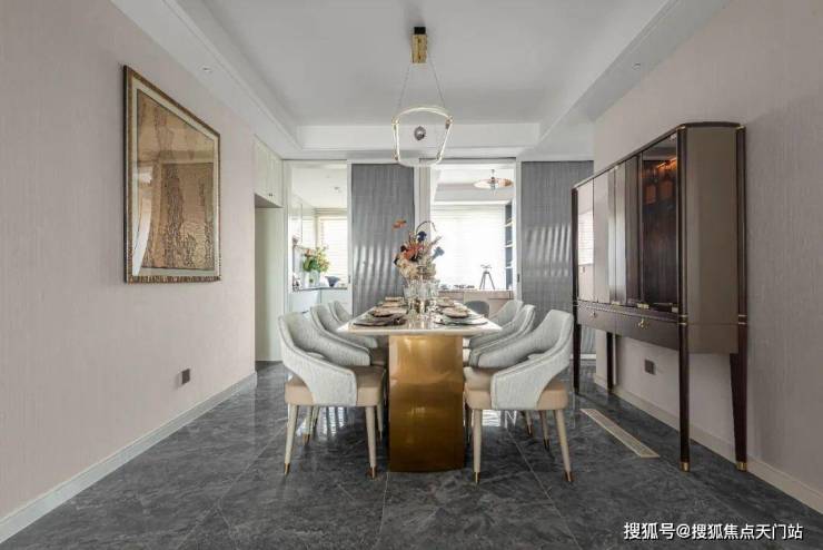 餐厅右侧的凹槽空间,可以作为冰箱、柜体等安置点或储物空间,更方便日常收纳。