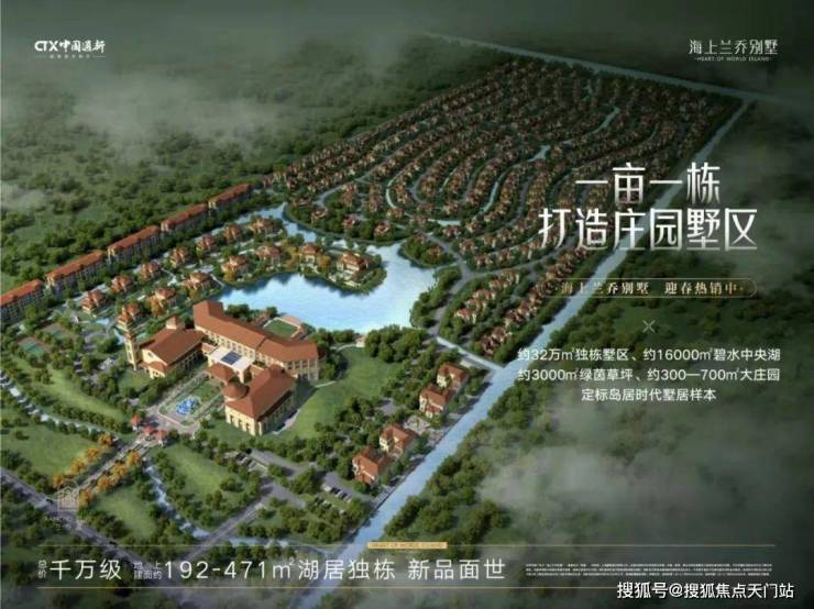 约32万方独栋墅区,约16000㎡碧水中央湖、约3000㎡绿茵草坪、约300-700㎡大庄园,总价千万级!