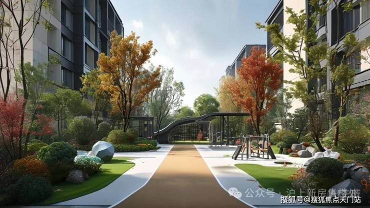 招商蛇口以“运营城市”的视野,将项目规划为一座自成一体的生态圈。项目紧邻泗陈公路与沪松公路,隶属大虹桥西南辐射圈,既承接区域发展红利,又以约35%的绿化率营造出“绿萝花园”般的生态环境。社区内采用“一环两轴多节点”的景观体系,约800米健康跑道串联起中央花园、儿童游乐区与健身空间,仿佛将自然脉络嵌入日常动线,让居民在归家途中即可感受四季更迭的诗意。建筑外立面以米白色为基调,搭配深灰色金属线条,简约中透出现代美学的力量感,既与城市风貌和谐共生,又成为区域内的视觉焦点。