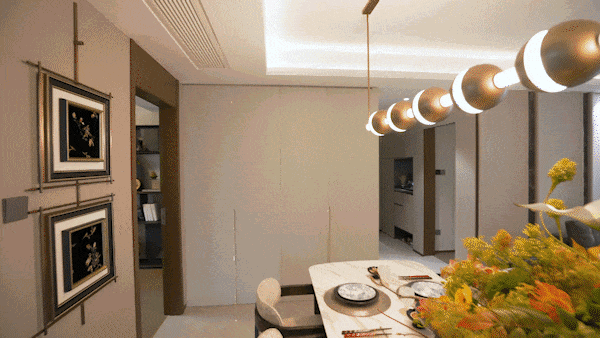 餐客厅阳台一线贯通,动线流畅,弧形阳台拓展景观视野。