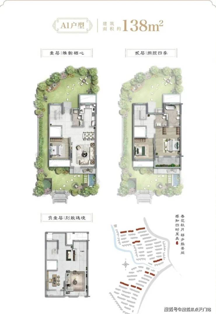 从户型设计上看:建面约138-188㎡联排与建面约211-214㎡院墅产品,庭前绿地,大面宽,地上仅2层,真正的低密宽境别墅,产品力断层式领先。