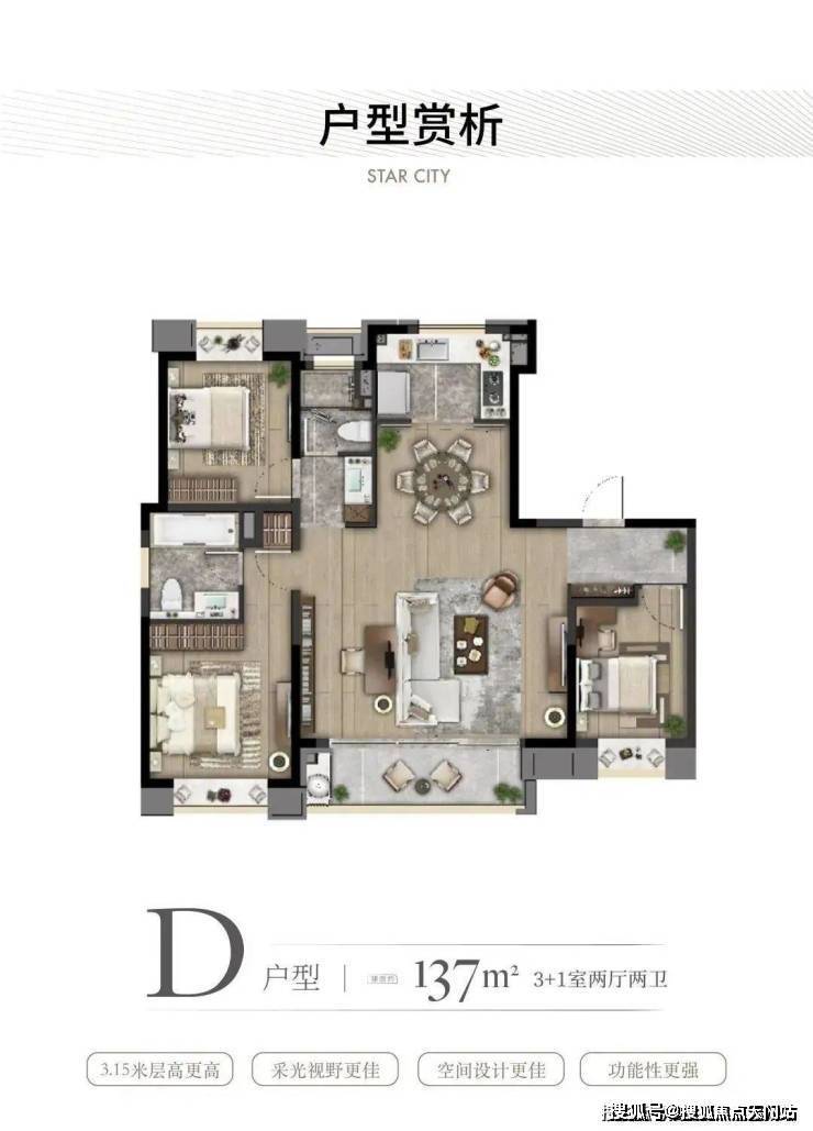 D户型建面约137㎡3+1室两厅两卫▼「虹桥灿耀星城」售楼处电话:400-118-3159