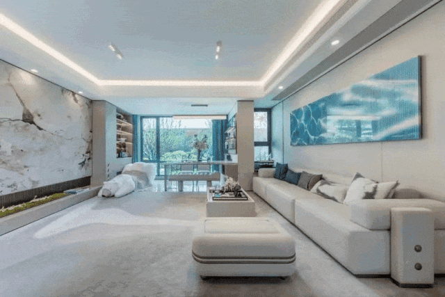尺度震撼:宽厅面宽约5.5米,3.5开间面宽共约11.5米,再加上约8㎡的阳台,使得整个家庭的公共区域尺度感十足、功能也更加灵活多变。