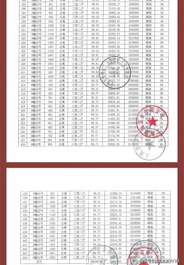 项目一房一价表