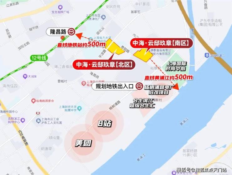 ☀︎12号线隆昌路站:直线距离约500m,4站北外滩,7站陆家嘴,8站人广