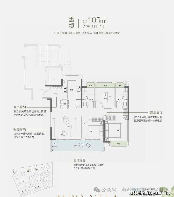 约9.8米南向面宽,配以超大尺度跑道式阳台,让室内外交融共生。