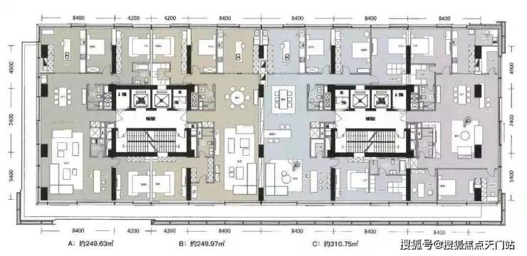 • 面 积:200.96㎡-𝟐𝟓𝟎.𝟏𝟒㎡(交付三房两厅三卫)