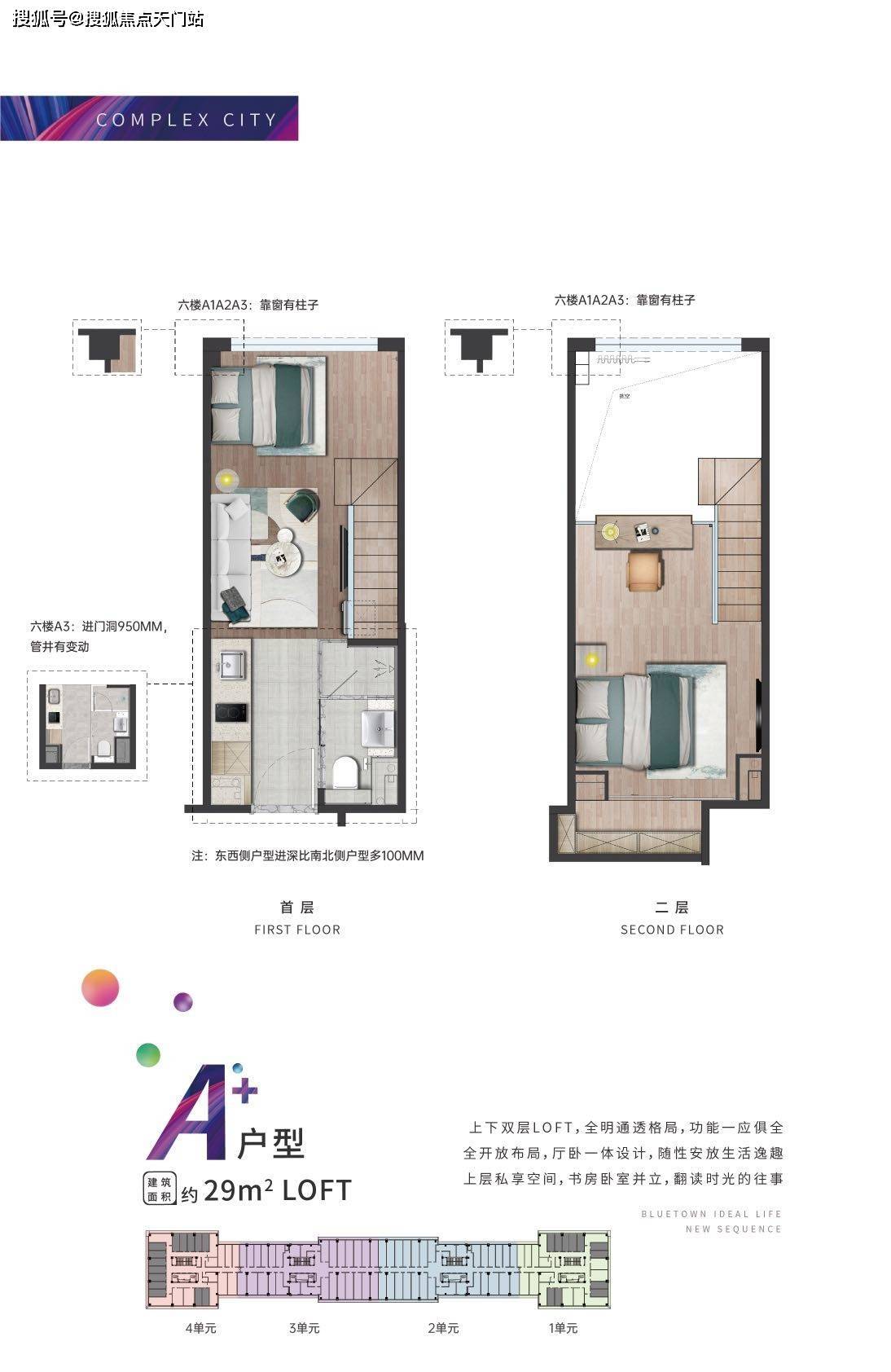 【楼层说明】地下1-2楼和地上1-2楼商业,3楼设备阳台,4-5楼平层公寓,6-12楼4.19米LOFT。