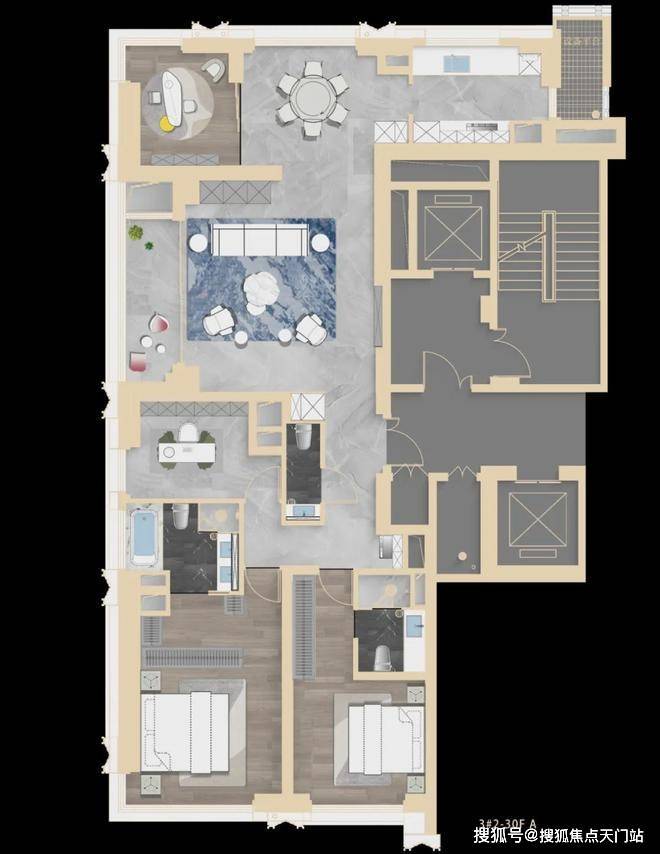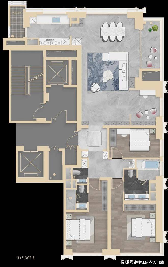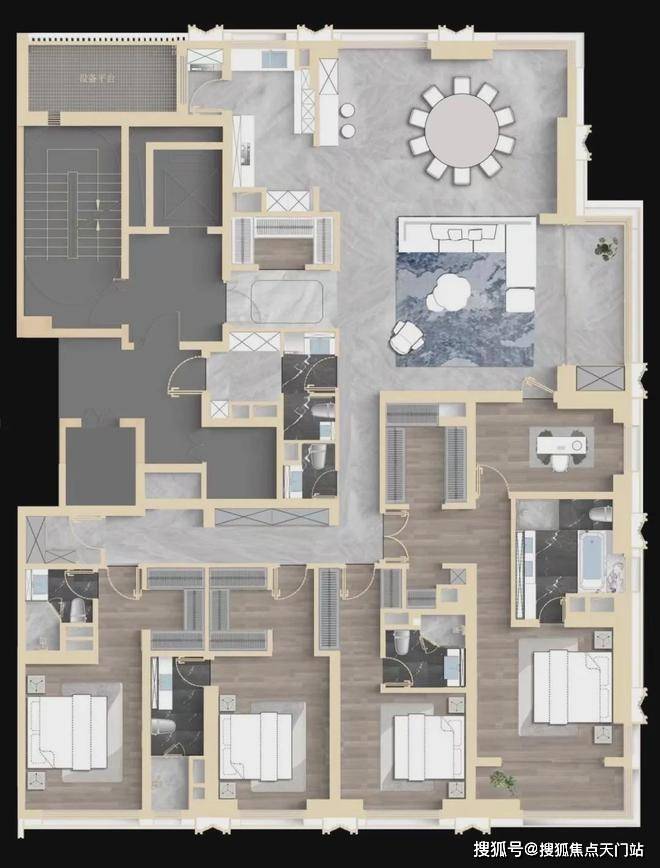 尤其主卧星级套房,配置独立衣帽间、书房,奢华主卫四分离,双台盆+淋浴区+大浴缸+智能马桶,私密性&奢适度无敌;