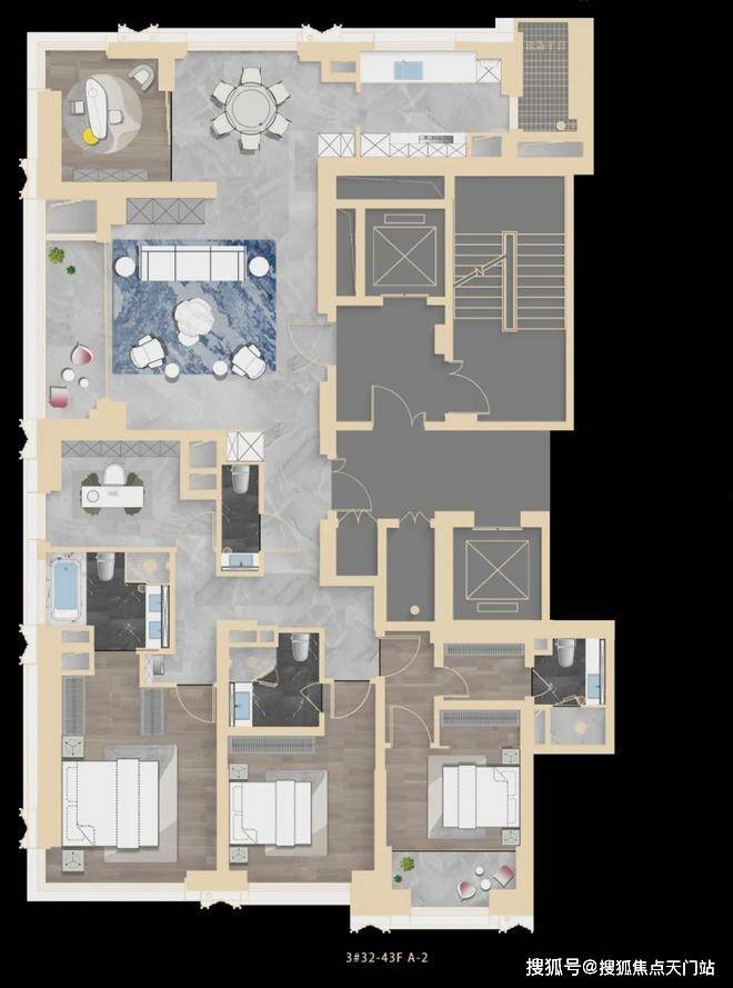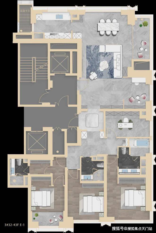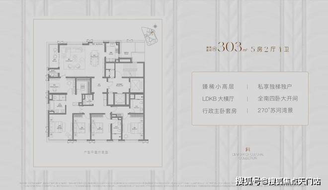 5开间朝南,4卧朝南双卧套房设计,南向超大采光面,让阳光和清风肆意流淌;