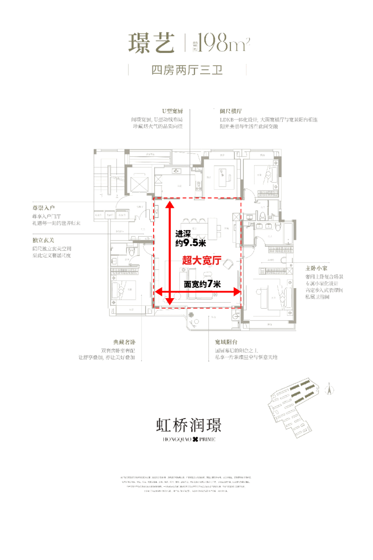 虹桥润璟建面约198㎡4房3卫堪称区域“孤品级”户型,也填补了大虹桥多年来终极改善空白。