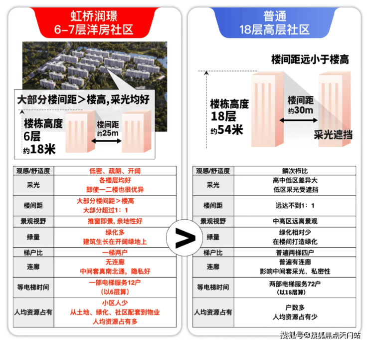 比如楼间距,虹桥润璟楼间距:楼高都超过约1.2:1。