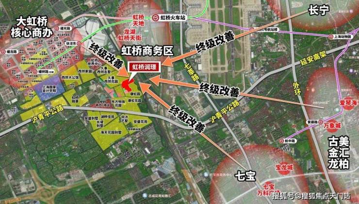 1、同级中更好的板块——大虹桥核心区,且被低密高端别墅包围;