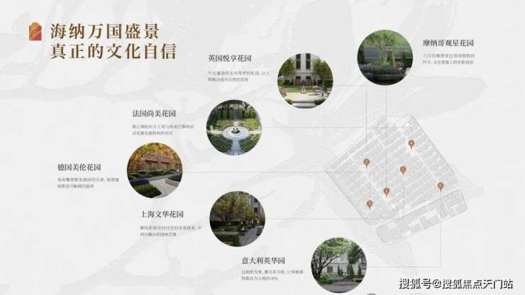 景观设计引入“六大万国花园”,汇集英式、法式、德式、意式等造园体系