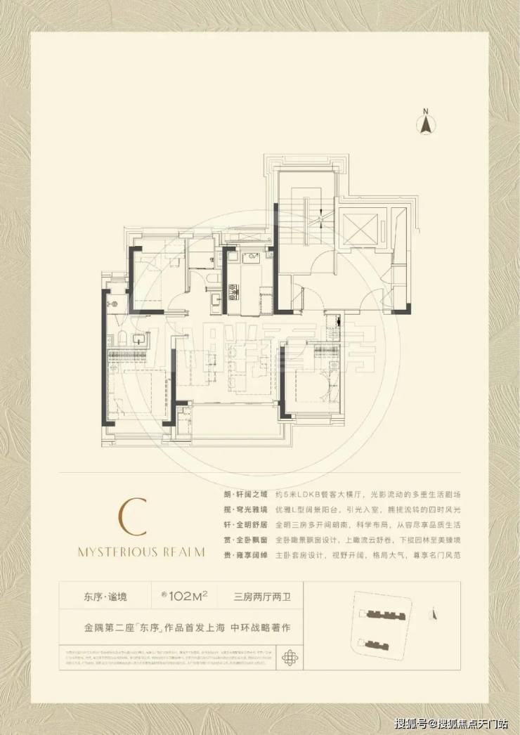 尤其项目建面约102㎡的户型,格局上超越了传统意义的三开间朝南,客厅面宽高达约5米外接差不多尺度的阳台,真正实现3.5开间,让业主起居之间沐浴更多阳光的同时,公区尺度感也直逼其他项目建面约100-120㎡户型。
