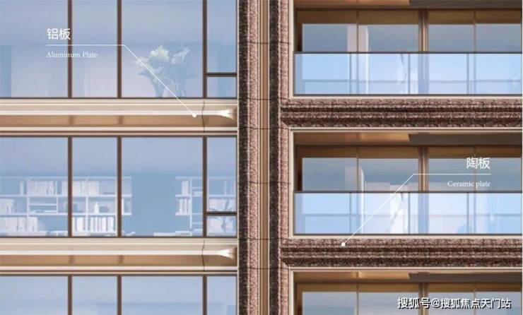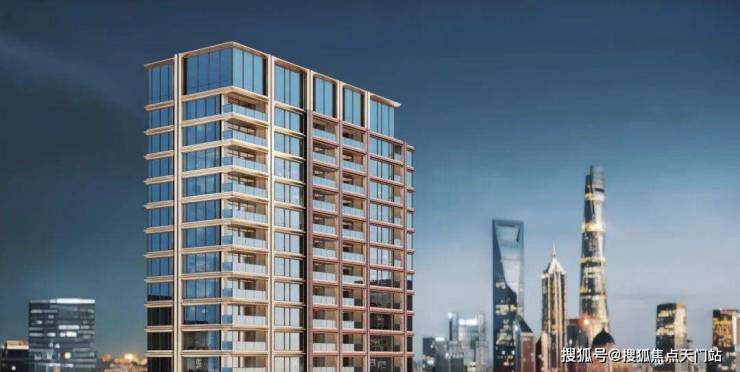 建筑四面均采用铝板+玻璃+定制陶艺,历经百次试烧锻造鎏金陶板,成就上海唯一国际东方艺术全景立面,每面皆城市封面,整体采用非对称的结构设计,回应上海东西方文化交融碰撞的城市美学。大胆采用四排楼布局,以保证户户通风采光,类一梯一户无连廊设计,将入户私密性做到极致。