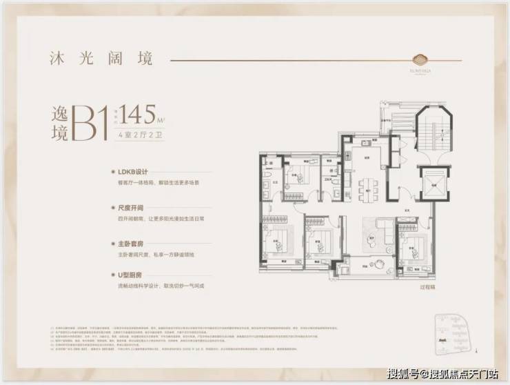 1、建面约145平户型热销且紧缺四房产品,类一梯一户设计,边套转角窗搭配超高窗墙比,采光通透,兼具功能与尺度的双重要求;