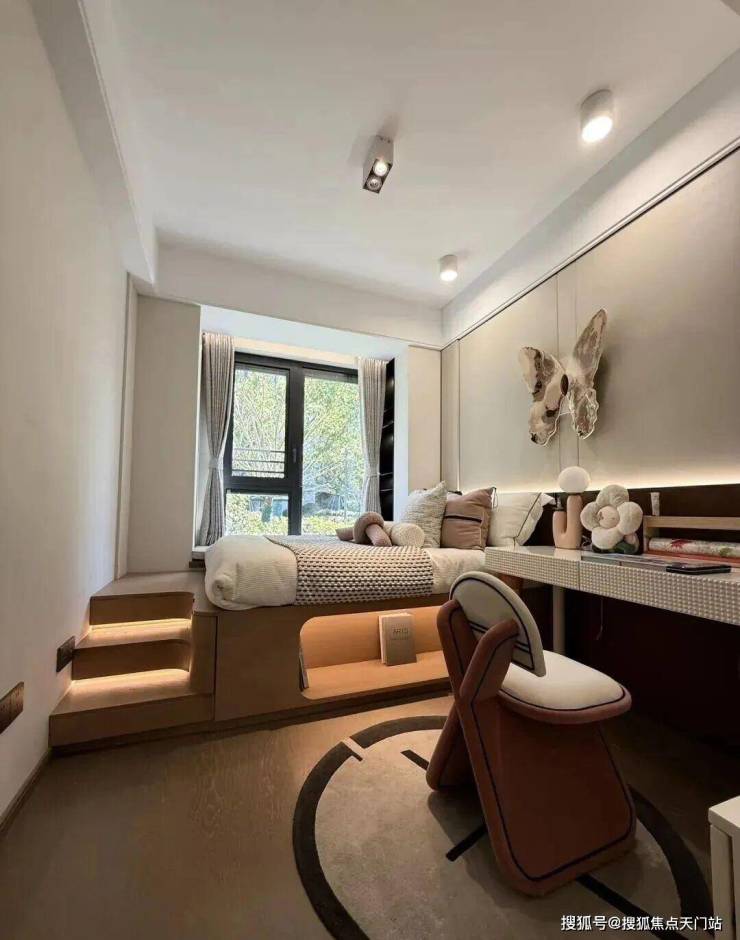 主卧做了大套房设计,带衣帽间+卫生间+飘窗,专属于主人的私密空间;