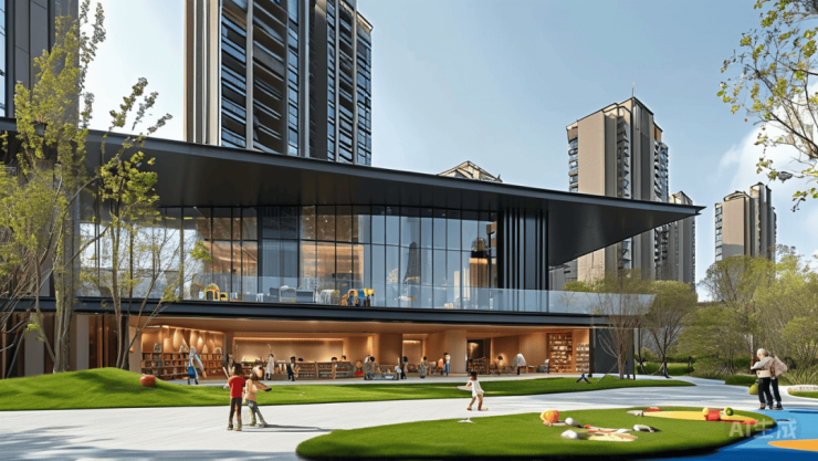 人车分流体系下,架空层被改造成阅读、健身、童玩三大主题泛会所。想象一下:孩子在草坪追逐嬉戏,老人在滨河步道慢跑,年轻夫妇在泛会所社交——全龄段的生活场景在此形成闭环。