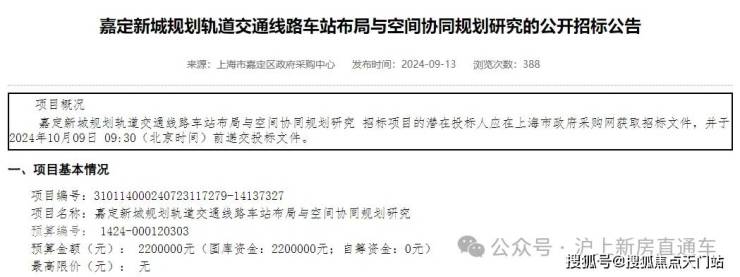 另外有一点值得重点一提:9月13日,上海政府采购网发布《嘉定新城规划轨道交通线路车站布局与空间协同规划研究的公开招标公告》。