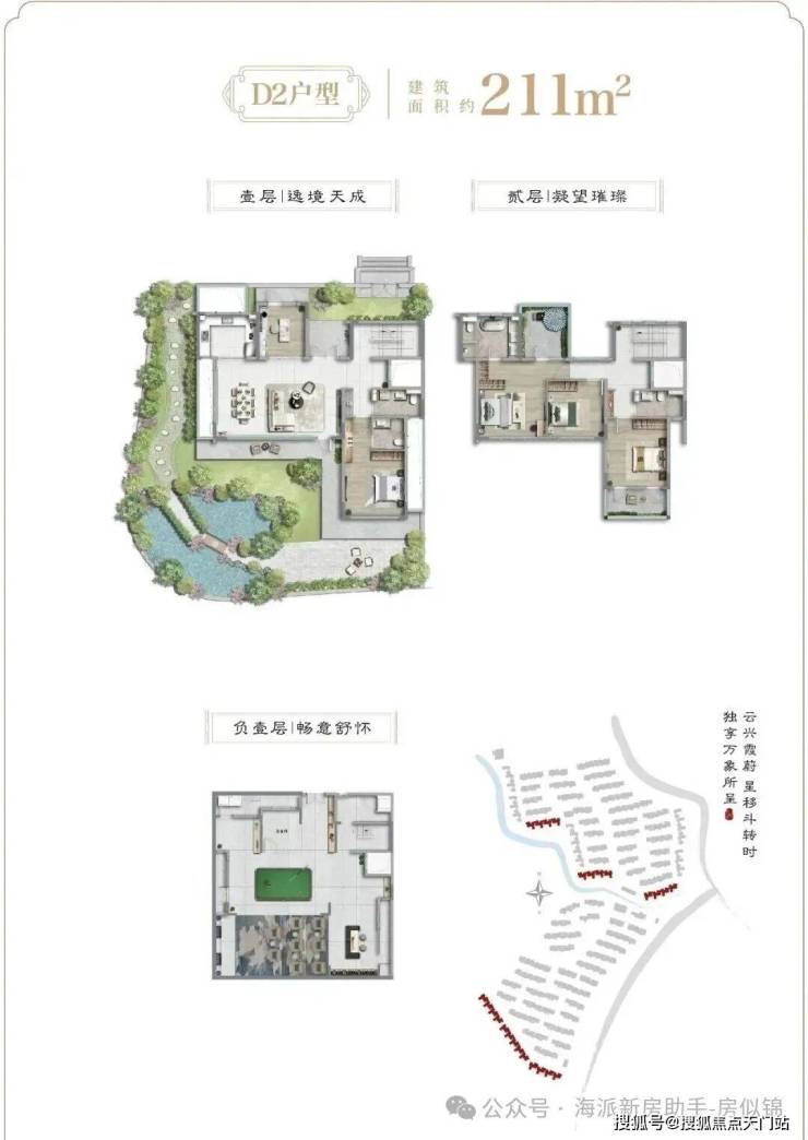 从户型设计上看:建面约138-188㎡联排与建面约211-214㎡院墅产品,庭前绿地,大面宽,地上仅2层,真正的低密宽境别墅,产品力断层式领先。