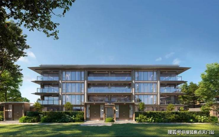 项目立面以多种新中式元素构筑东方建筑美学,横向采用大面玻璃幕墙,保障隐私的同时,尽可能的增大建筑内外场景对话。