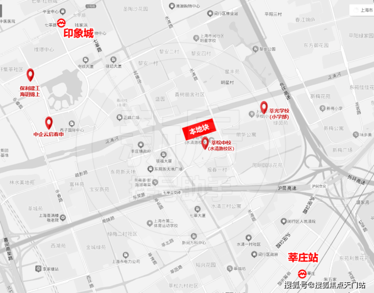 地块周边有莘松中学水清路校区和莘光学校,其中,莘松中学水清路校区就在该地块对面,这两所学校都是闵行区传统的公办名校,均建校超过30年。