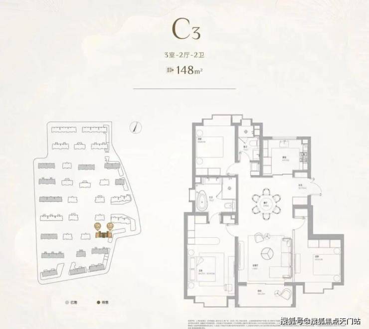 项目一期房型均呈现大开间、短进深的特点, 主力房型为131㎡3房,占到一期总量的70%,其余房型为100㎡2房,155㎡3房,175㎡4房。 项目一期于2022年11月入市,推出621套房源(C区),总认购1400+组,认购率225%,入围分55.28,开盘售罄!