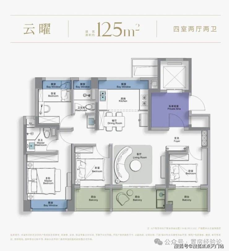 建面约125㎡“云曜”户型,是一张精准打击市场痛点的“全能王牌”。当传统还在为“三开间朝南”而满足时,西派云间直接给出了 “四开间朝南+三阳台” 的暴击配置。这意味着三个卧室全部朝南,阳光从清晨照耀到黄昏,告别北向卧室的阴暗与潮湿。更难得的是,它标配了“一梯一户” ,专属梯厅不仅赋予了归家极高的私密感和尊崇感,更带来了宝贵的附加收纳空间。室内约3米的优越层高、LDKB一体化布局以及近10㎡的南向宽景阳台,共同让这个125方家,实现了尺度感、通透性和功能性的全面越级。