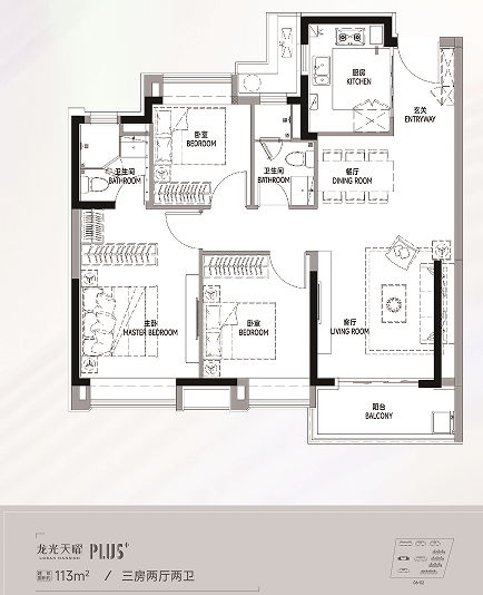 「龙光天曜」在户型设计方面也是下了很大的功夫,在保证户型方正的基础上,通过对住宅内部功能空间结构的科学设计,尽可能创造更多南向空间。