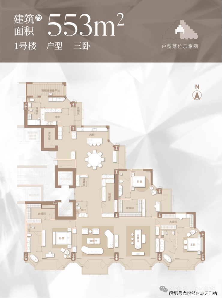 项目在售建面约363-553-619-1500㎡奢阔大平层,总价约7600万起。