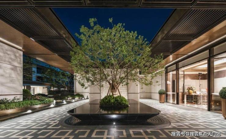 社区入口处,百米酒店式落客门庭,超60年树龄铁冬青打造的“大树聚场”、潘多拉发光石拼花的“躺平水院”,直接将“千万级豪宅质感”的产品兑现力呈现在眼前,家人休憩、邻里小聚也有了好去处。