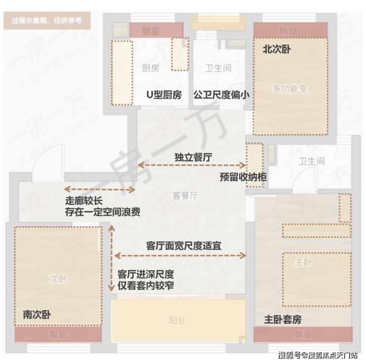 此外,北侧厨房与卫生间开门并列,距离稍微有些近,如果介意的朋友可能需要实际感受一下再做评判;