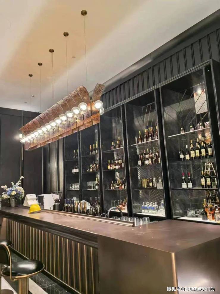 细节之处,光是一个接待台,就采用了产自玻利维亚约4500米海拔的高原矿脉——玻利维亚蓝石材,是世界上储存量最少的石材之一,非常珍贵;而大堂的柱子,也是巴西乌金奢石;