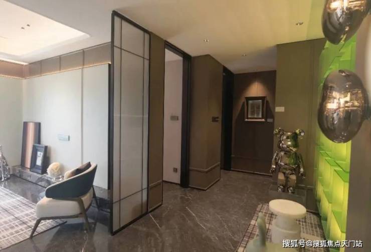 地上精装大堂的设计同样出彩, 地面的石材拼花造型与墙面的石材背景相得益彰,将静奢海派的艺术风格展现得淋漓尽致,为业主带来无与伦比的视觉盛宴。