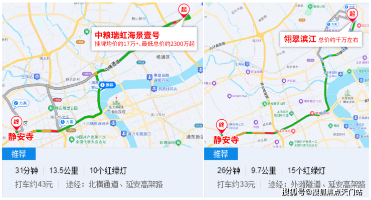 但论去市区的出行时间,中粮瑞虹海景壹号与翎翠滨江,真的就是伯仲之间。