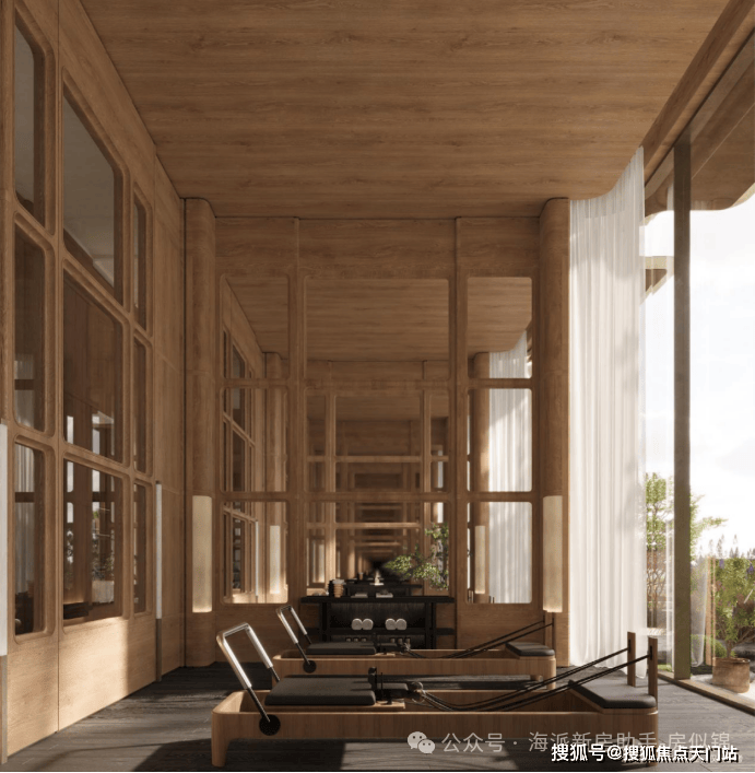 “回归之境”以3500㎡下沉水苑为核心,汇聚会客、泳池、茶室等多功能空间,形成仪式感十足的社区舞台。
