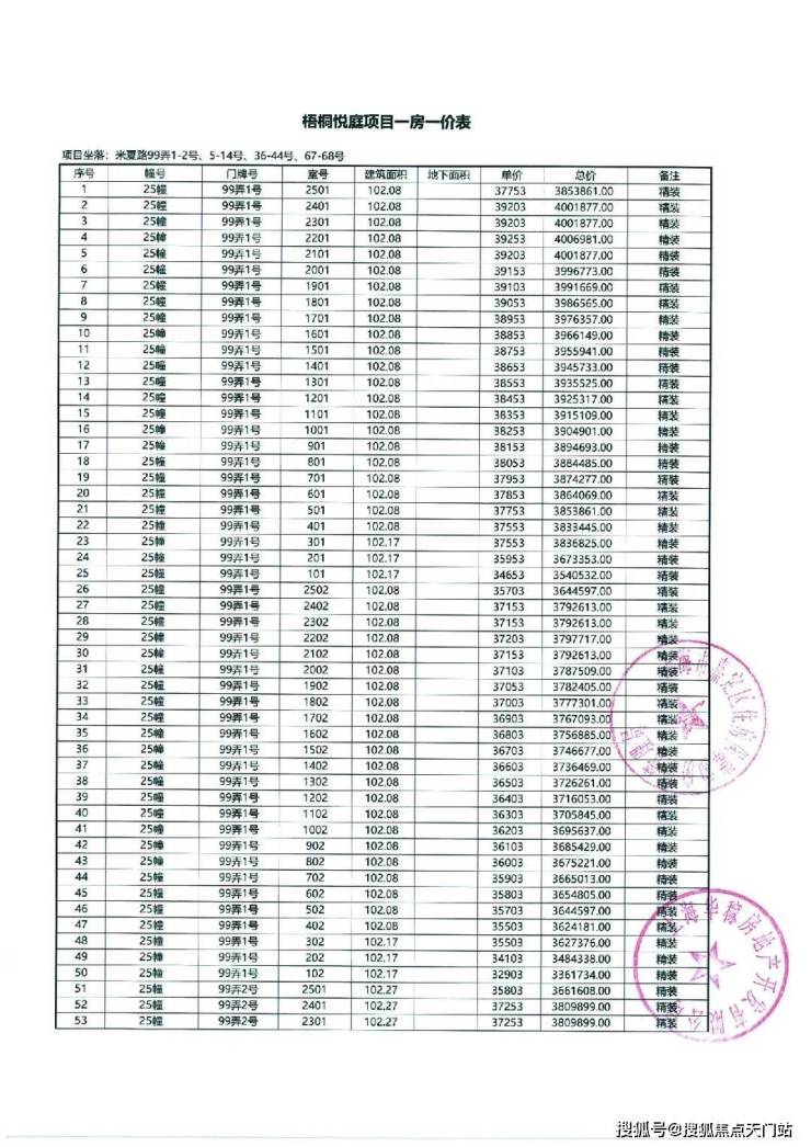 以下为项目最新一房一价表