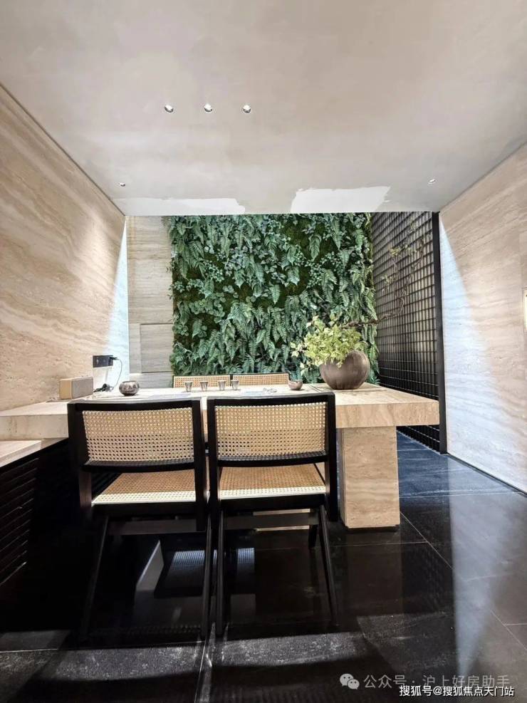 第三景-绿波廊下:这里是一个半开放式的吧台空间,开窗与中庭大树遥相对应,树影青葱,清风摇曳,享受悠闲风雅。