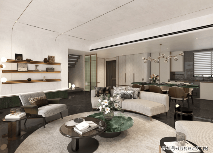 立面腰线等细节处则提炼汝窑“金线”传奇符号,以还原精雅的繁复工艺,为建筑线条进行金线勾边,点睛强烈而隽永的美学仪式感;较高的窗墙比延伸视野边界的同时,呈现极简派超高颜值…诸如此类的精工细节不胜枚举,真正做到了坚持骨子里东方文化标签,用现代材料与传统技法相结合,打造出符合现代审美需求的高质人居产品。