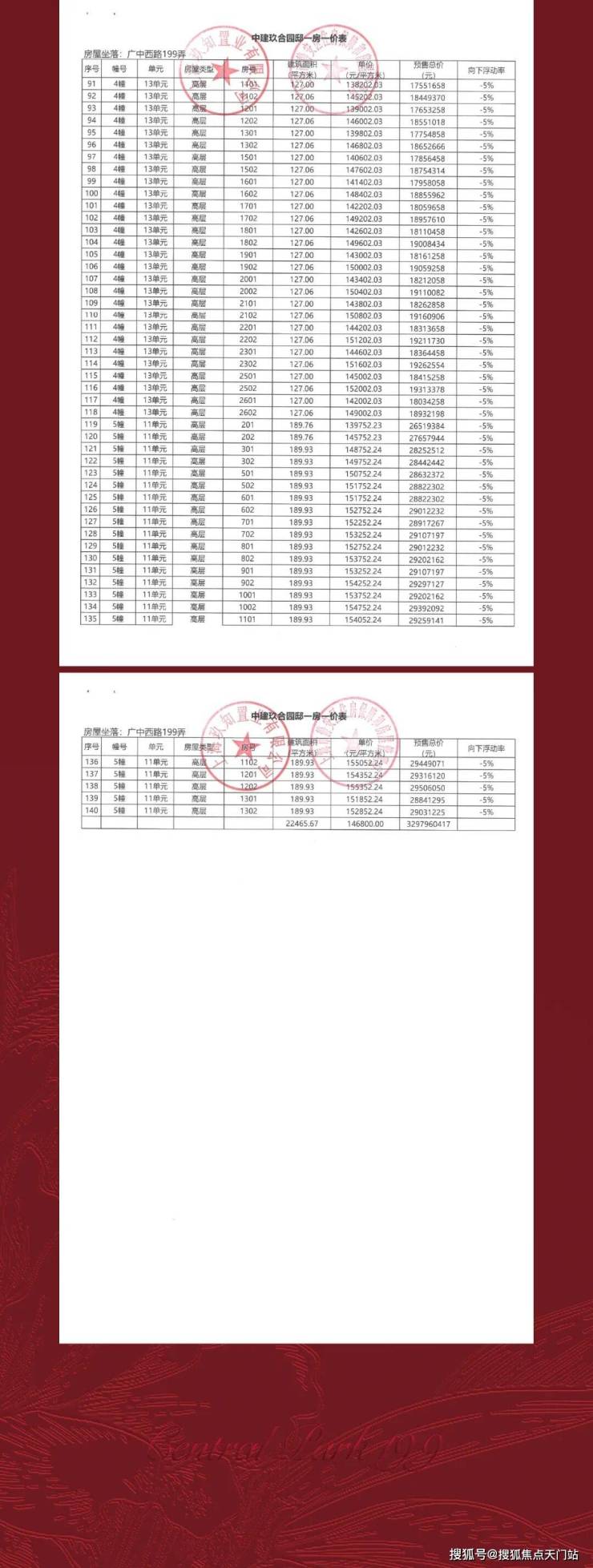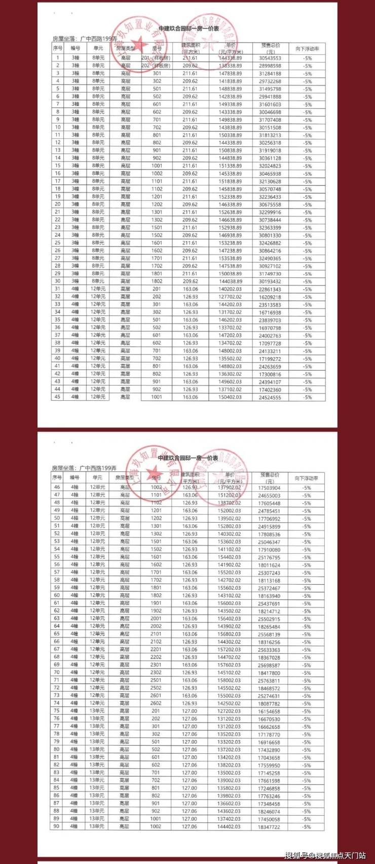 上期一房一价表