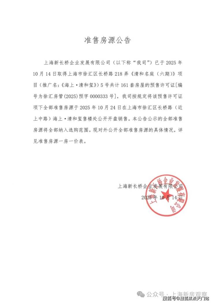 徐汇红盘「海上·清和玺」加推161套建面约112-120㎡3房;均价11万/m²!